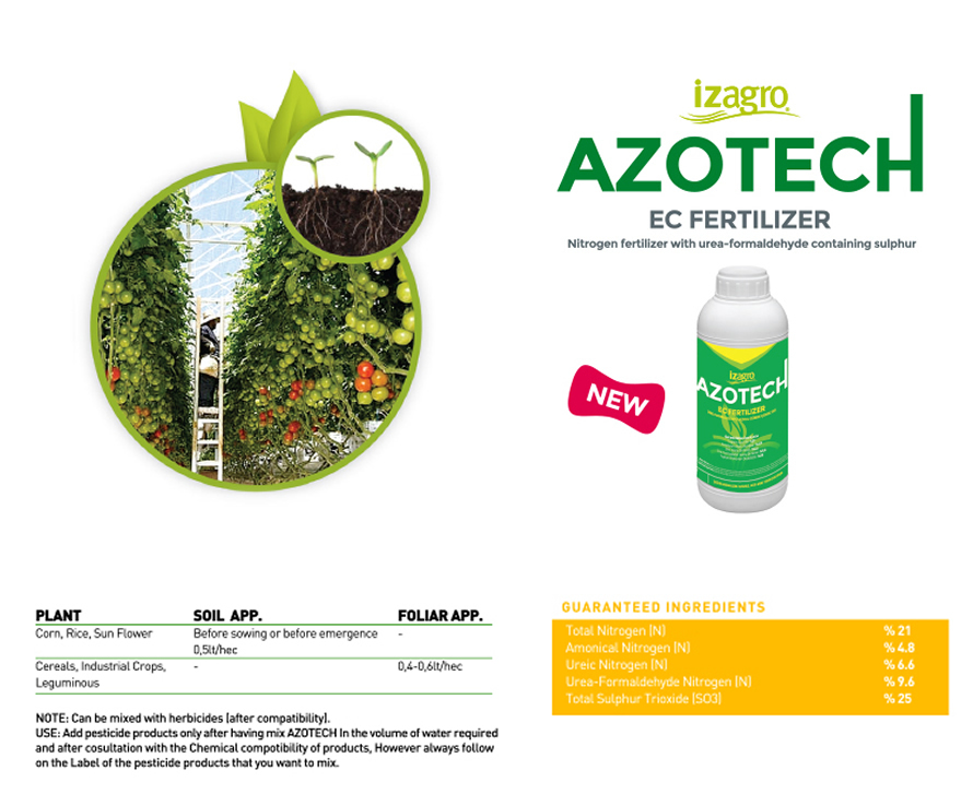 USE: Add pesticide products only after having mix AZOTECH in the volume of water required and after consultation with the chemical compatibility of products, however always follow on the Label of the pesticide products that you want to mix.